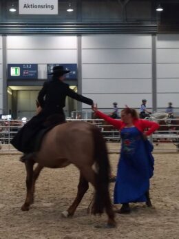 Wir sind regelmäßig auf internationalen Messen vertreten und zeigen unser Können und das unserer Pferde auch vor größerem Publikum. Gerne können Sie uns für Ihre Veranstaltung zur Gestaltung von Showauftritten buchen – sprechen Sie uns einfach an.