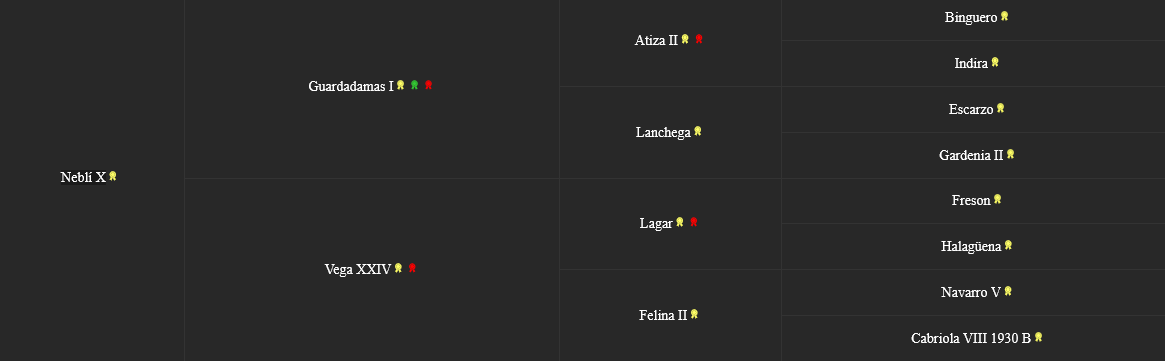 In seinem exzellenten Pedigree erweist sich die komplette Blutlinie beider Seiten als besonders ausdrucksstark und siegreich in der Dressur. Ein besonderer Ausnahmehengst war dabei sein Vater Guardadamas – als siebenfacher Grand-Prix Sieger, der auch für die Olympiade nominiert war. Dank seiner ausgezeichneten Herkunft vererbt der Hengst nur bestes vielfältiges Blut. Seine Nachkommen zeichnen sich durch bestes Exterieur aus, gepaart mit hervorragender Bewegung. Sohn Sardinero V präsentiert sich bereits jetzt sehr erfolgreich als Dressur-Nachwuchstalent in den Vereinigten Staaten.